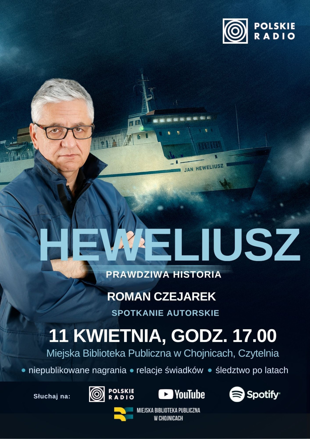 "Heweliusz, prawdziwa historia i opowieść o tym, co wydarzyło się tej nocy naprawdę. Zapraszam państwa na spotkanie, opowiem o szczegółach. Sobota 11 kwietnia, godzina 17.00, Miejska Biblioteka Publiczna w Chojnicach. Do zobaczenia i do usłyszenia.