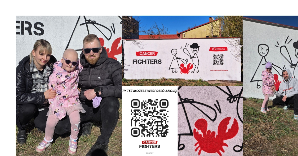 "To był strzał w serce, ale musieliśmy działać. Nie mogliśmy się poddać"- tak Ariel Romaszewski, tata Nadii wspomina moment, w którym z żoną Natalią dowiedzieli się o chorobie córki. Pięciolatka z Człuchowa choruje na ostrą białaczkę limfoblastyczną. Fundacja CANCER FIGHTERS wspiera ich rodzinę od początku leczenia. W minioną sobotę, ich przyjaciel, człuchowski artysta Michał Gałan postanowił stworzyć mural w centrum miasta. Inspiracją była głośna akcja Łatwoganga oraz piosenka Bedoesa i Mai Mecan.