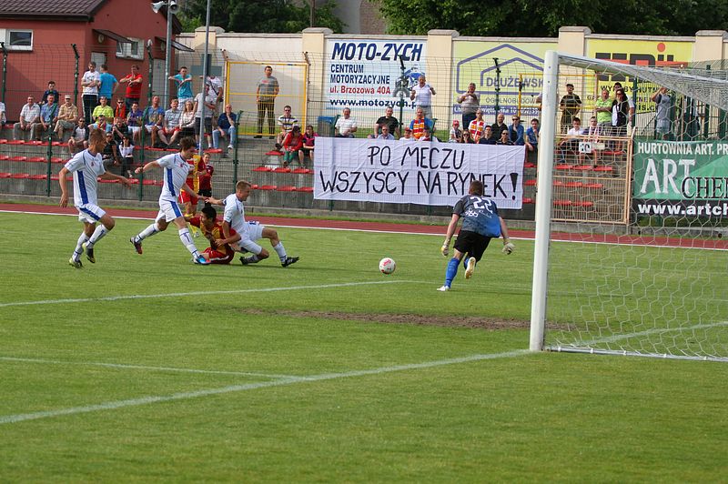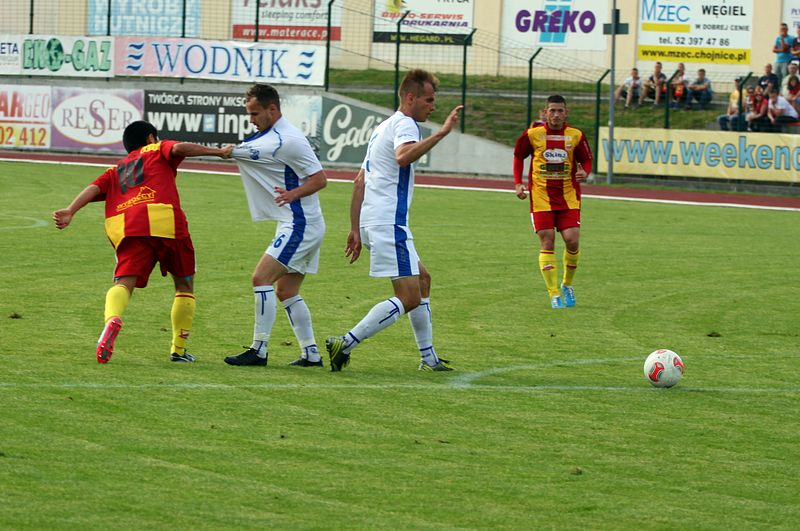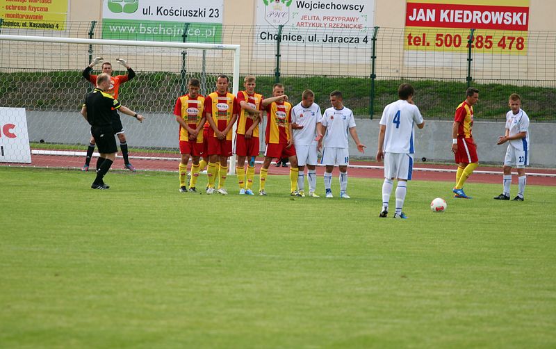Zamknij oknoPierwsza bramka podczas meczu padła dla Kluczborka. W 27. minucie gola dla gości zdobył Wojciech Bzdęga. Przed końcem pierwszej połowy chojniczanie zdołali jednak odrobić stratę - w 35. minucie wyrównującą bramkę strzelił Tomasz Mikołajczak. Decydujący gol, również strzelony przez Tomasza Mikołajczaka, padł z rzutu karnego w 90. minucie spotkania.