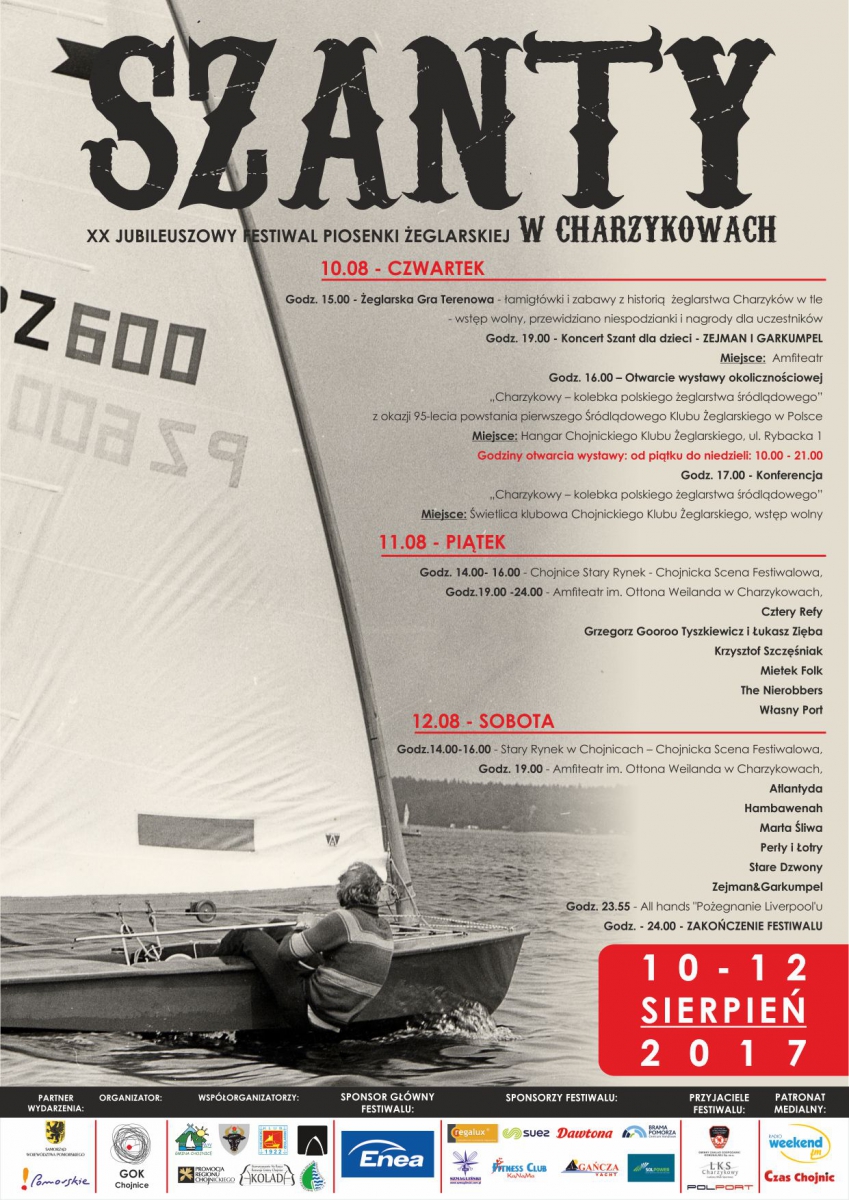 Zamknij oknoRusza XX Festiwal Piosenki Żeglarskiej Charzykowy 2017 r. W tym roku impreza zbiega się z 95-tą rocznicą powstania pierwszego na śródlądziu polskiego klubu żeglarskiego. Ten powstał właśnie w Charzykowach.