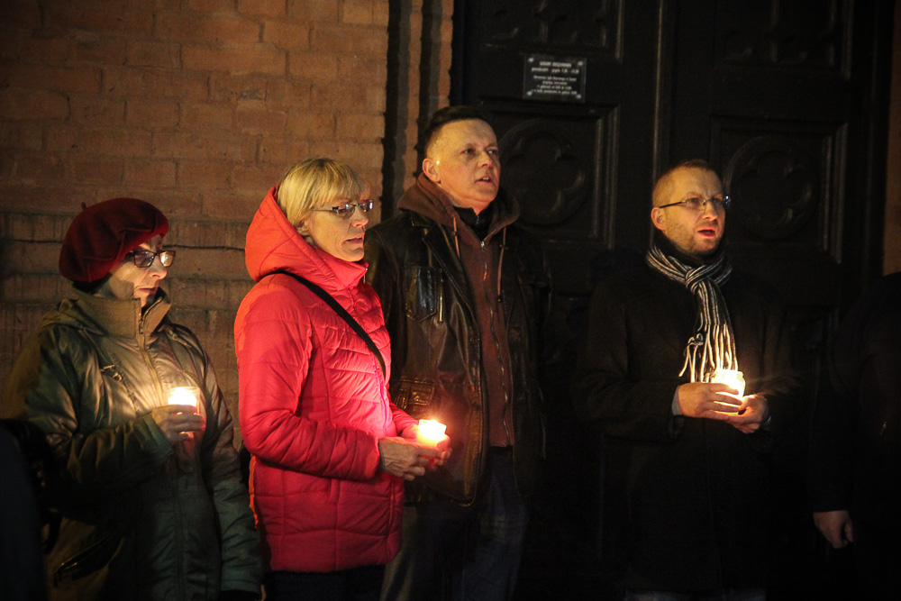 Zgromadzeni zapalili białe świeczki i odśpiewali hymn:
