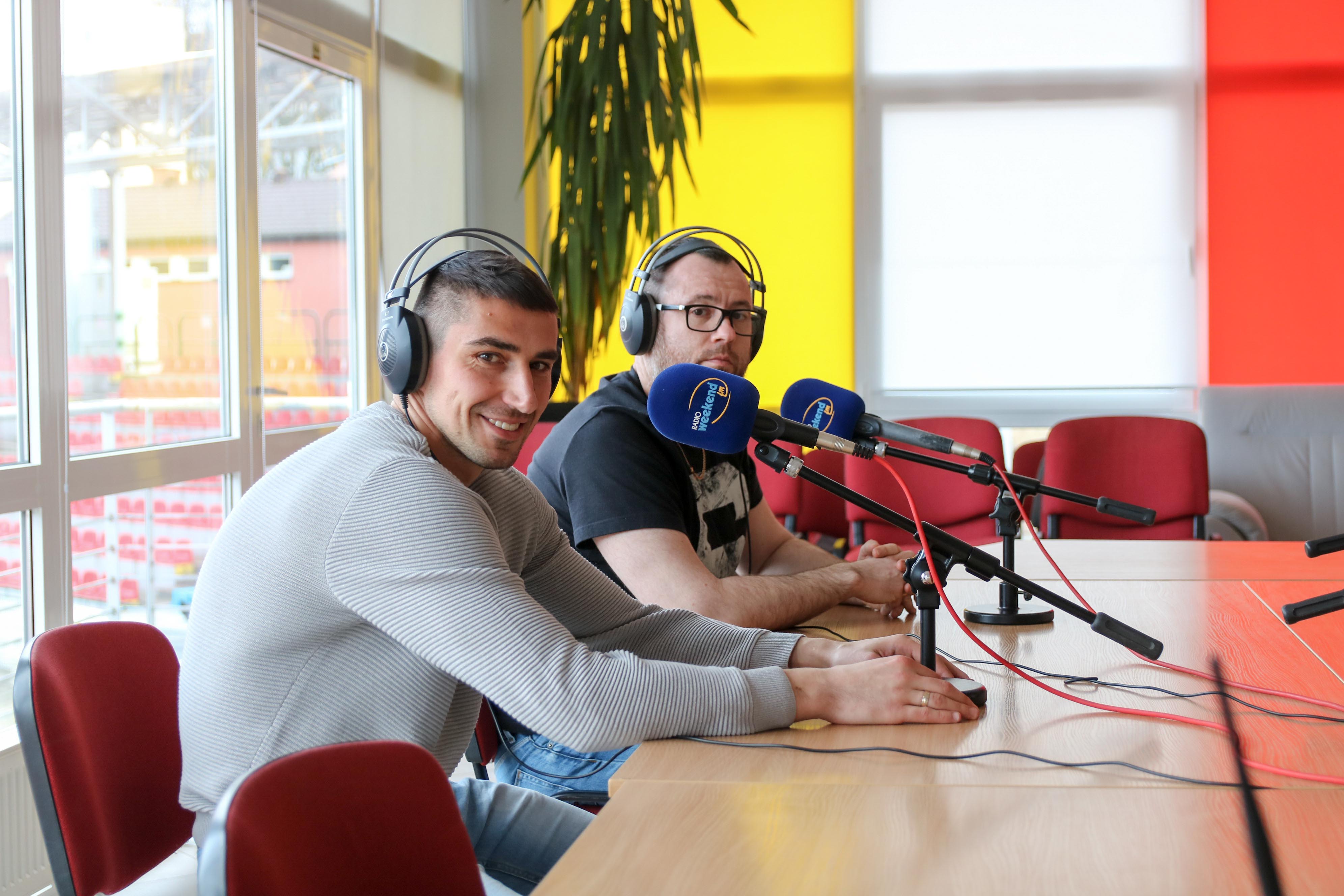 Zaczęliśmy od rozmowy z lokalnymi dziennikarzami, którzy od lat zajmują się Chojniczanką. Byli z nami Aleksander Knitter z portalu chojnice.com oraz Michał Sagrol z Czasu Chojnic. Potem w mobilnym studiu pojawili się kapitan Chojniczanki Paweł Zawistowski i wiceprezes klubu Jarosław Klauzo.