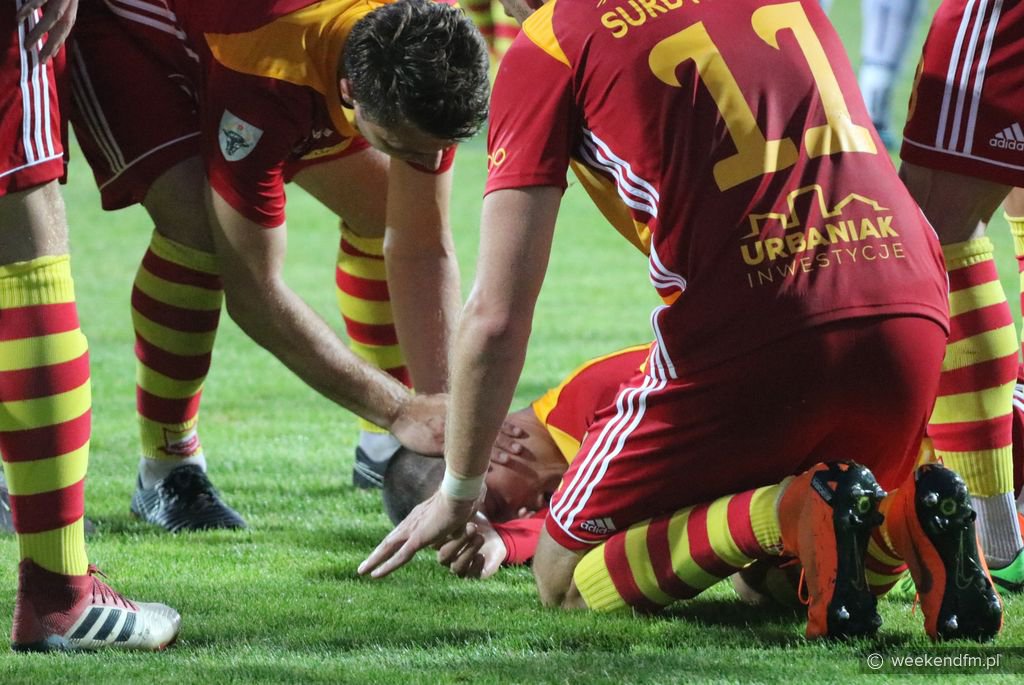 Pierwszoligowiec z Chojnic prowadził od trzeciej minuty po golu byłego piłkarza Sandecji Wojciecha Trochima. Potem strzałem z rzutu karnego na 2:0 podwyższył Hubert Wołąkiewicz. Bramkę na 3:1 zdobył Tomasz Boczek. Przy strzale został uderzony w głowę przez bramkarza gości i na chwilę stracił przytomność. Pozostał jednak na boisku do końcowego gwizdka.