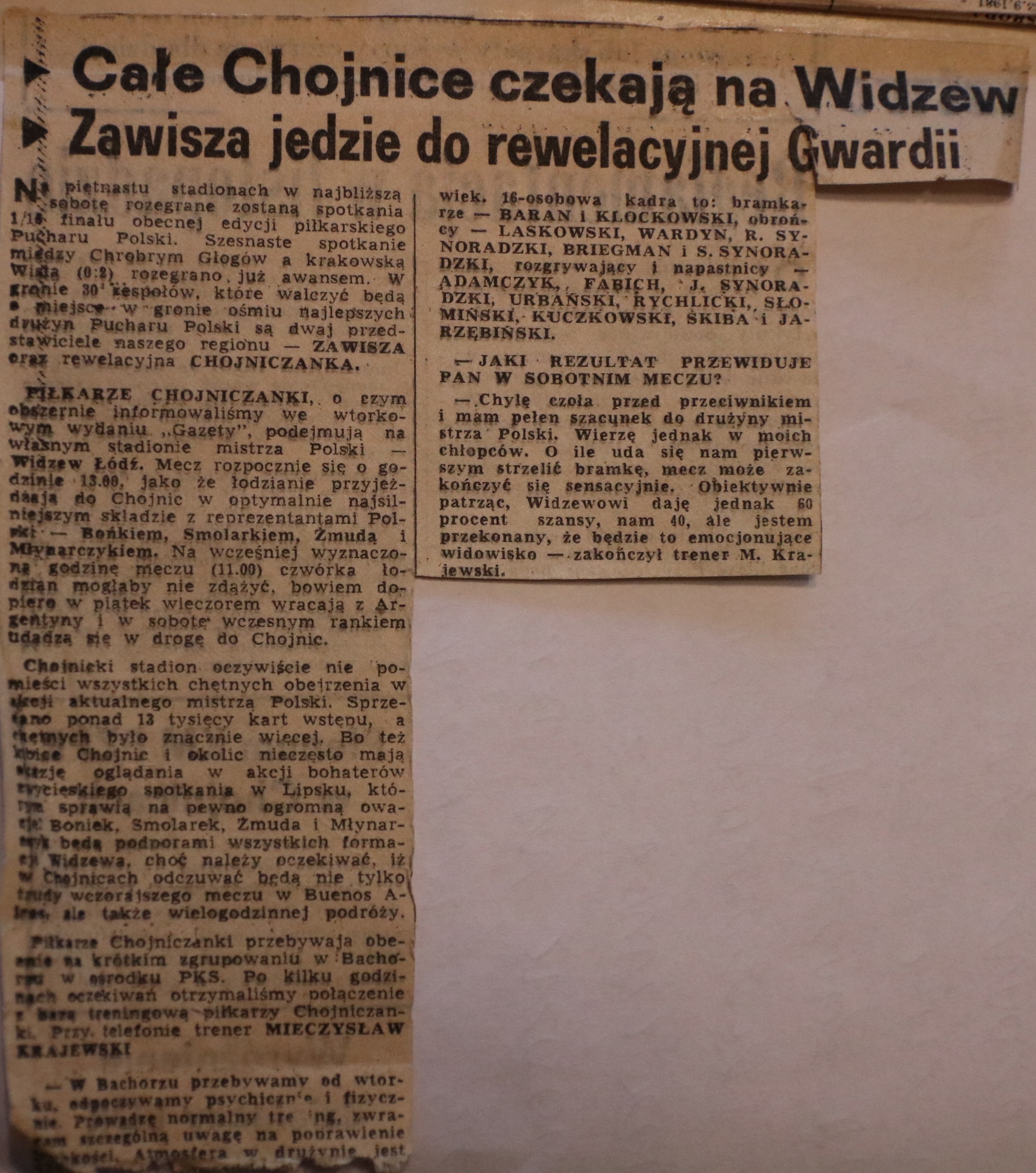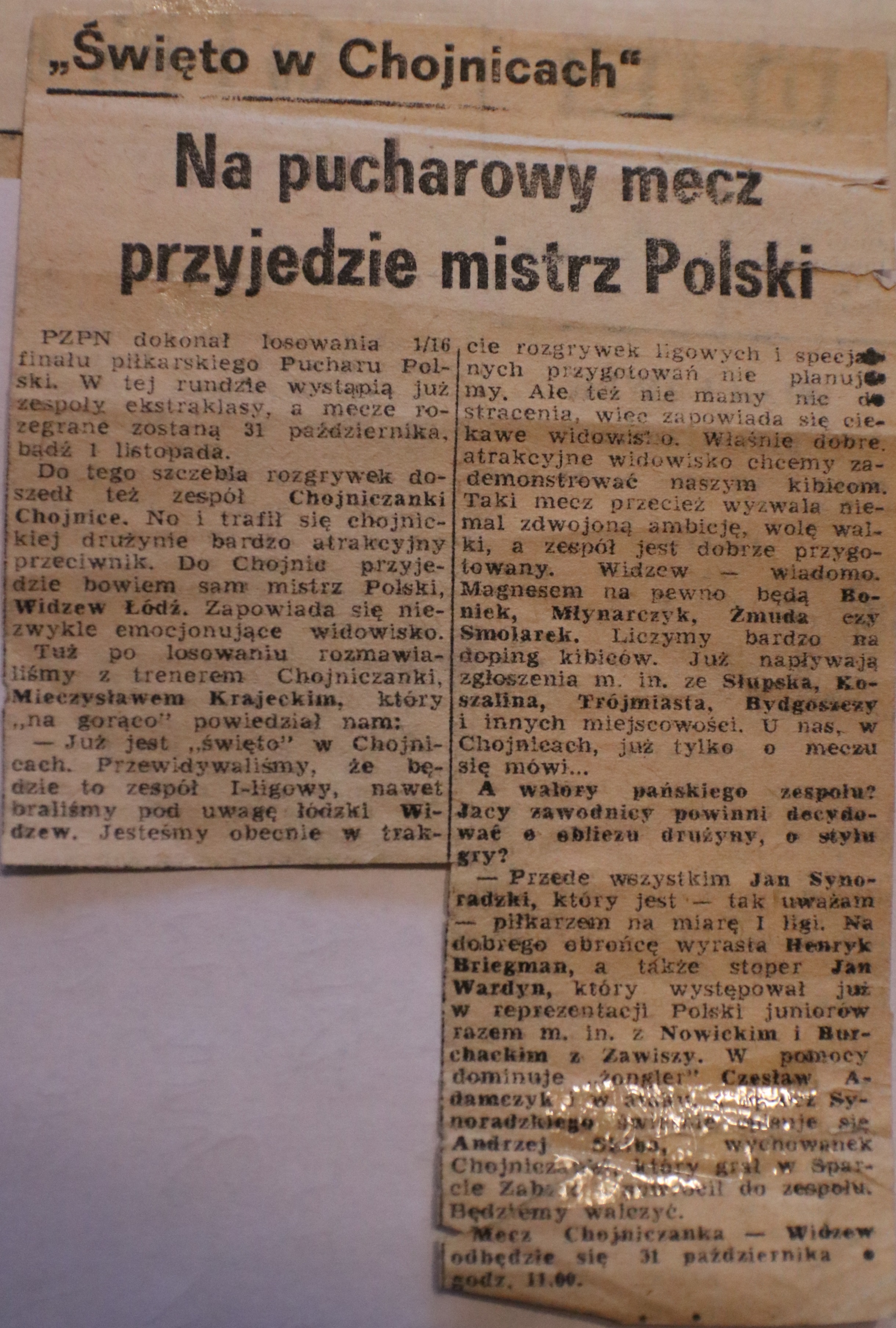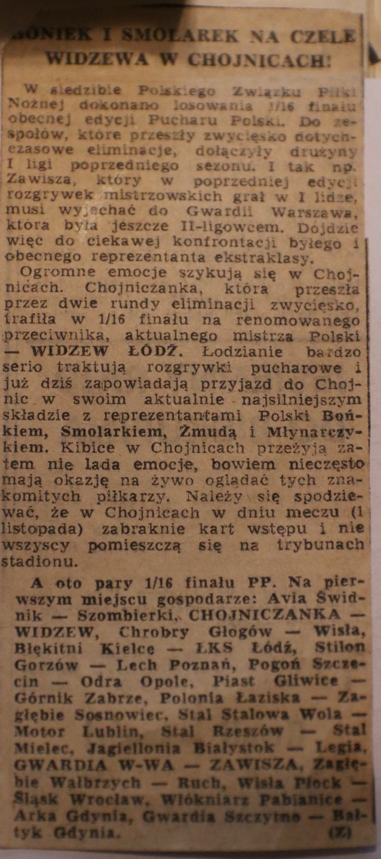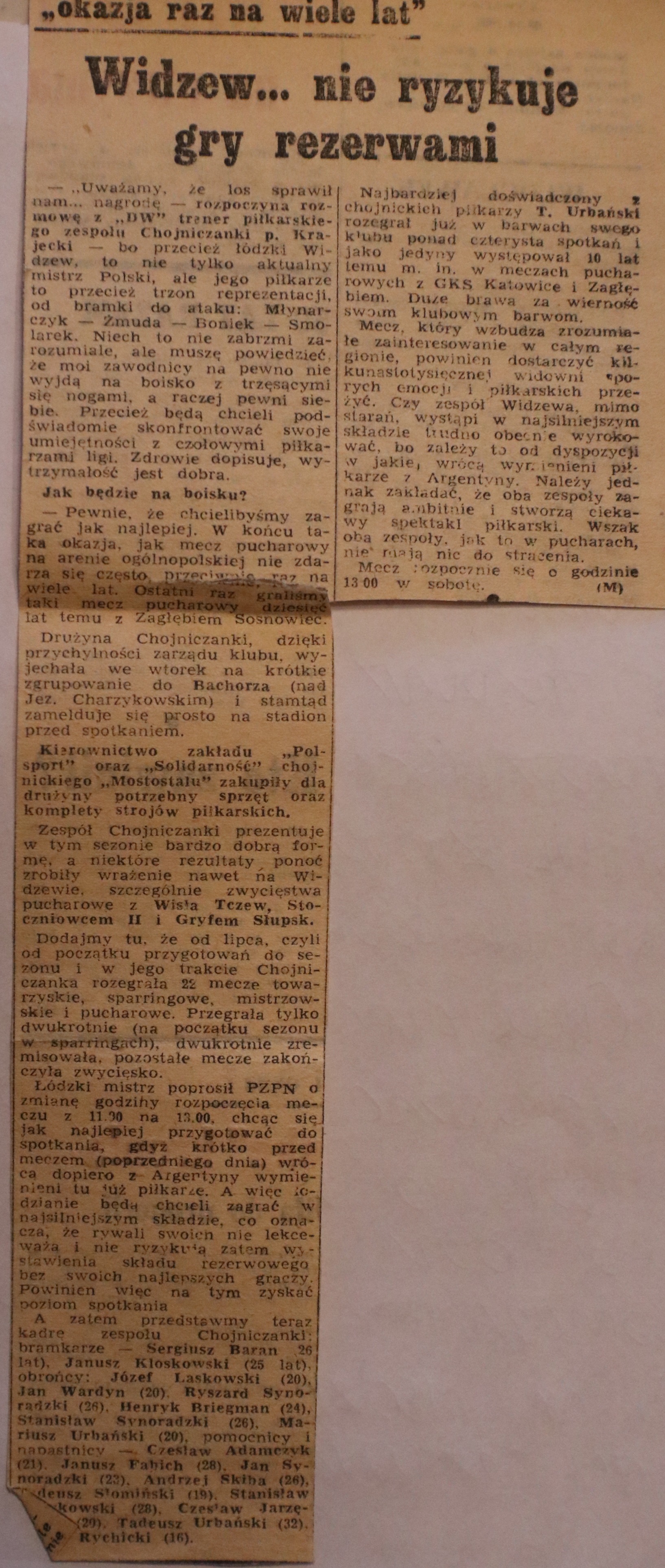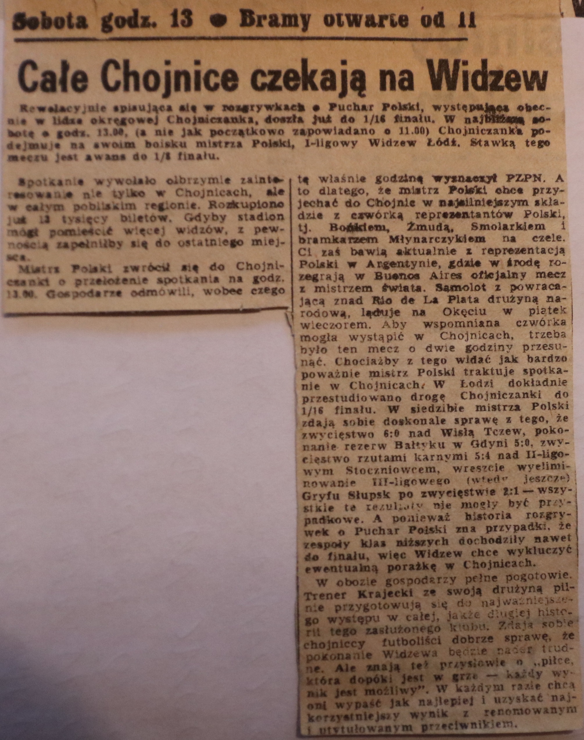 1/16 finału Pucharu Polski 1981/1982: Chojniczanka Chojnice – Widzew Łódź 1:2 (1:1)