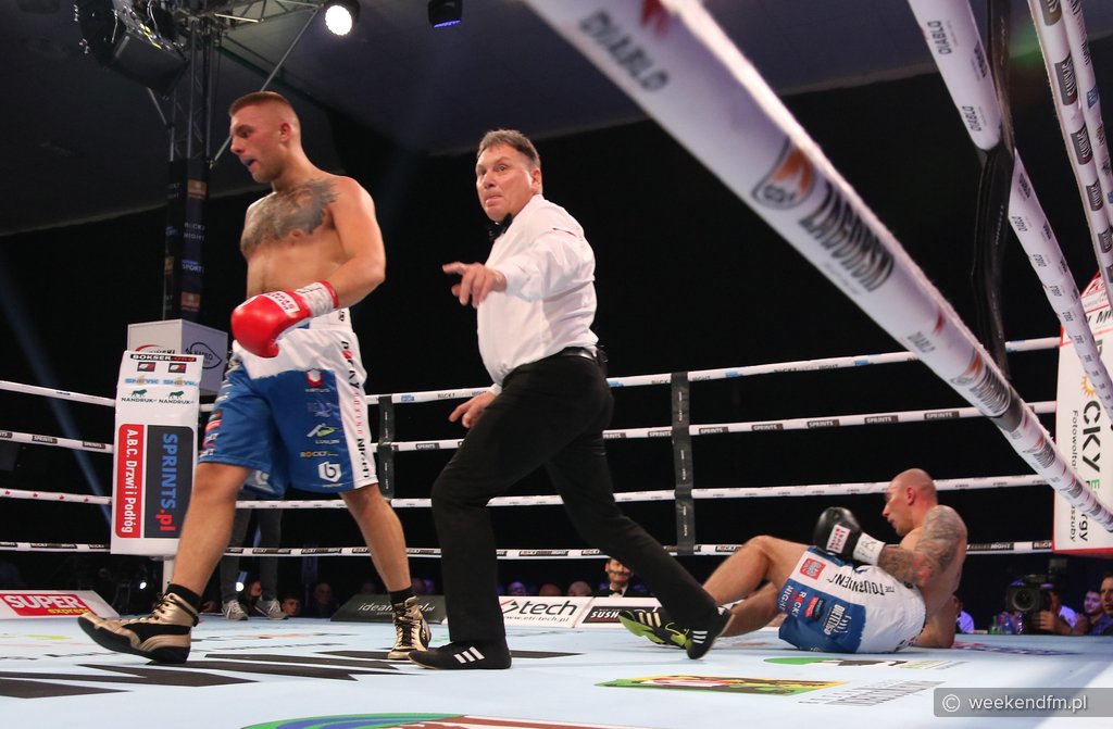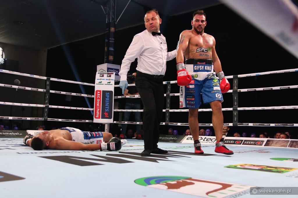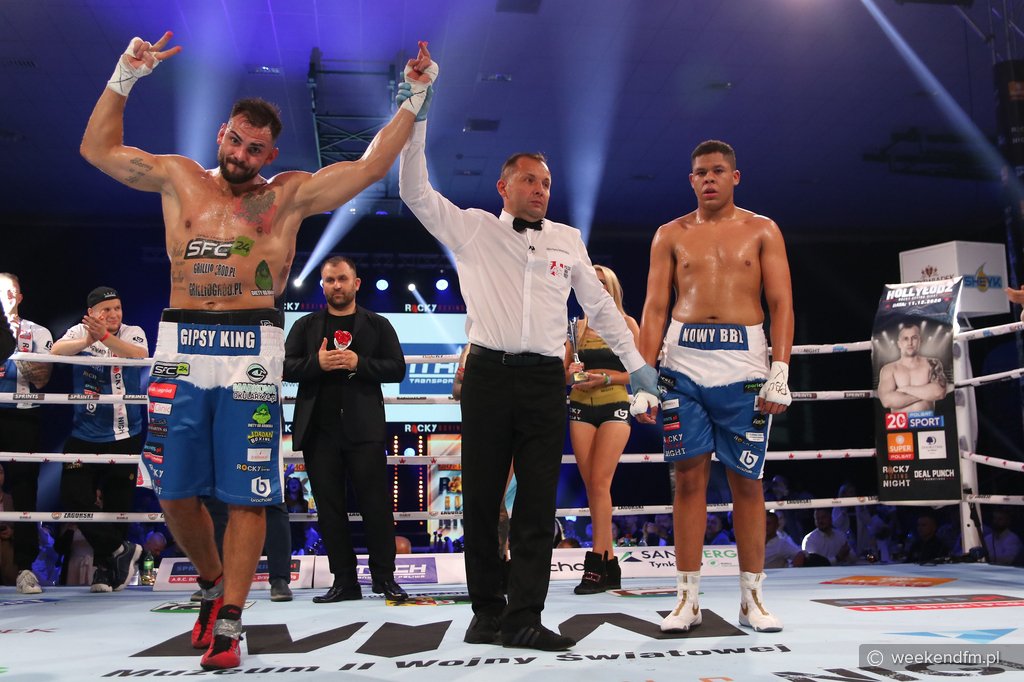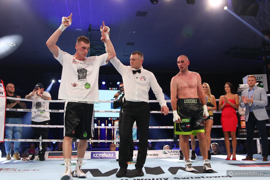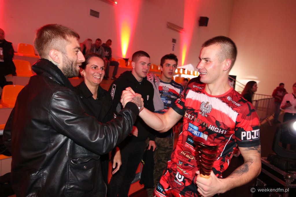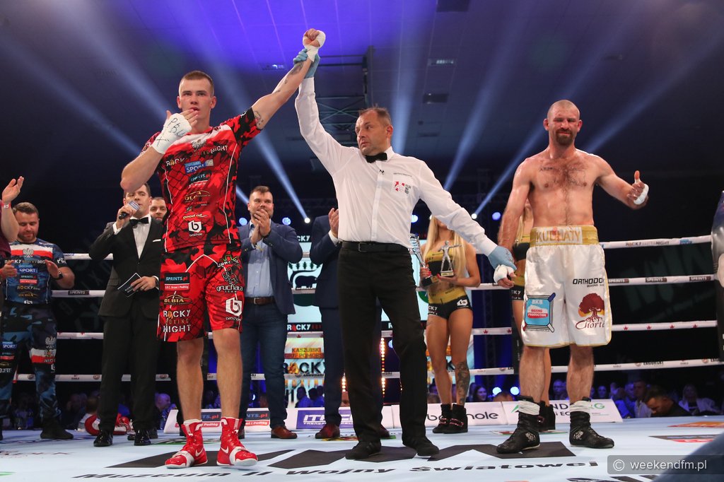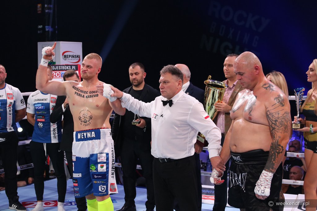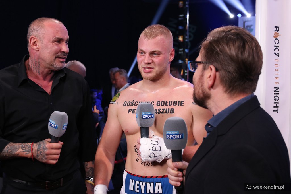 Mówi Weekend FM Nikodem Jeżewski. Kacper Meyna z Gołubia pokonał Zoltana Csalę z Węgier przez nokaut w trzeciej rundzie. Adrian Szczypior z Niedamowa koło Kościerzyny oraz Kewin Gruchała z Chojnic stoczyli walki na pełnym dystansie i wygrali je jednogłośną decyzją sędziów. Pokonali – odpowiednio – Adama Grabca i Bartosza Głowackiego.
