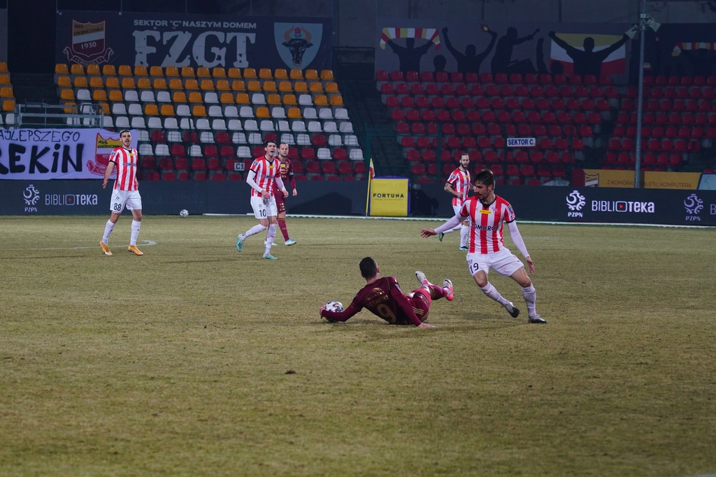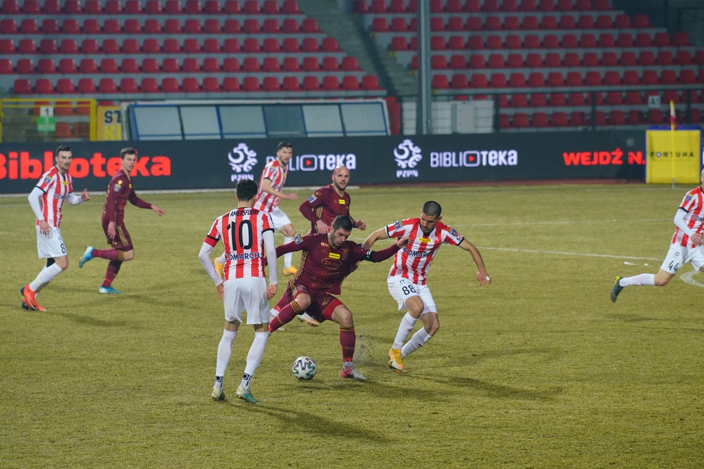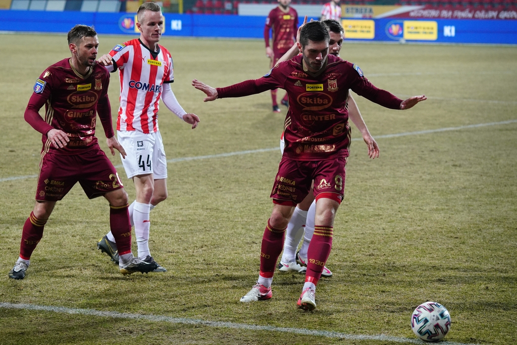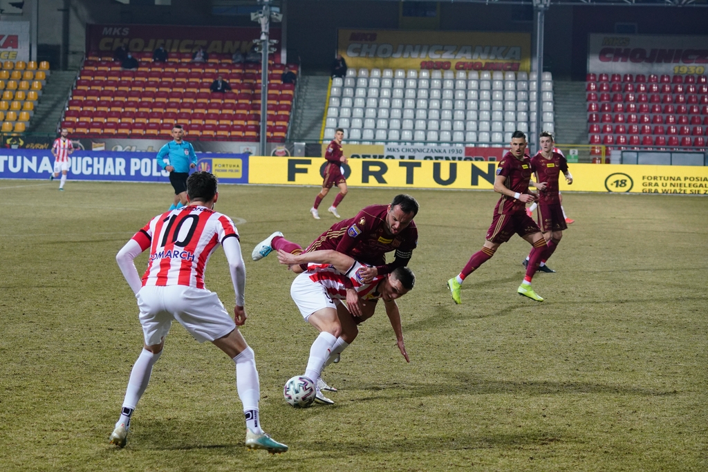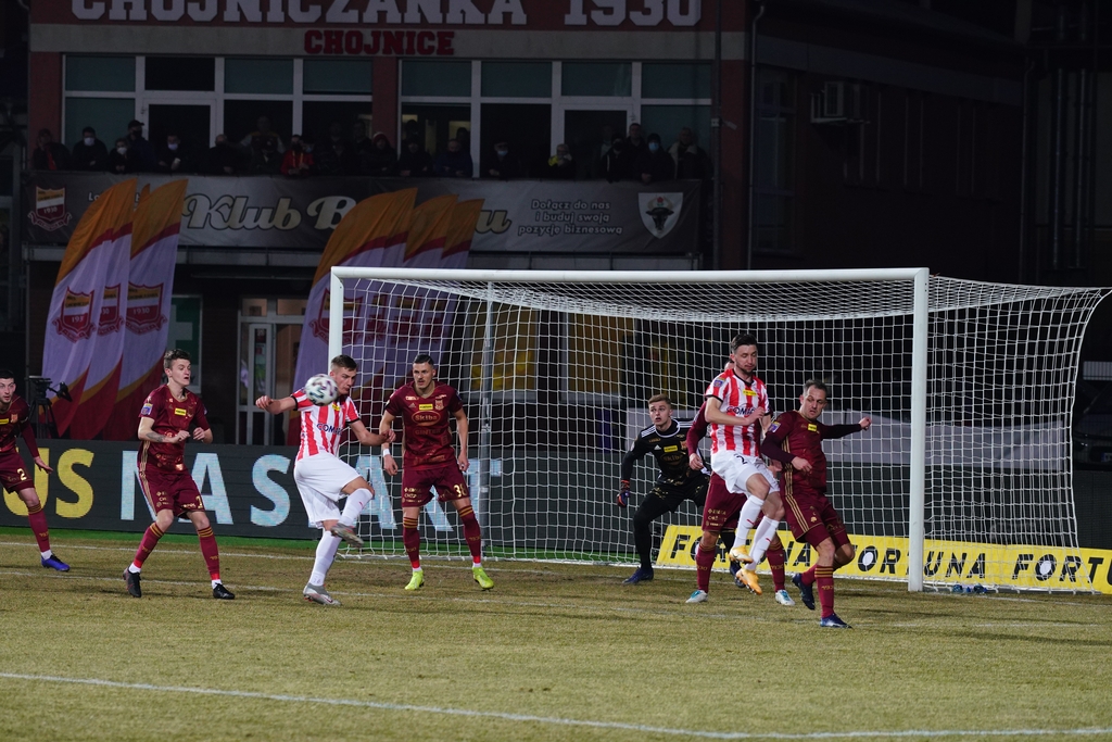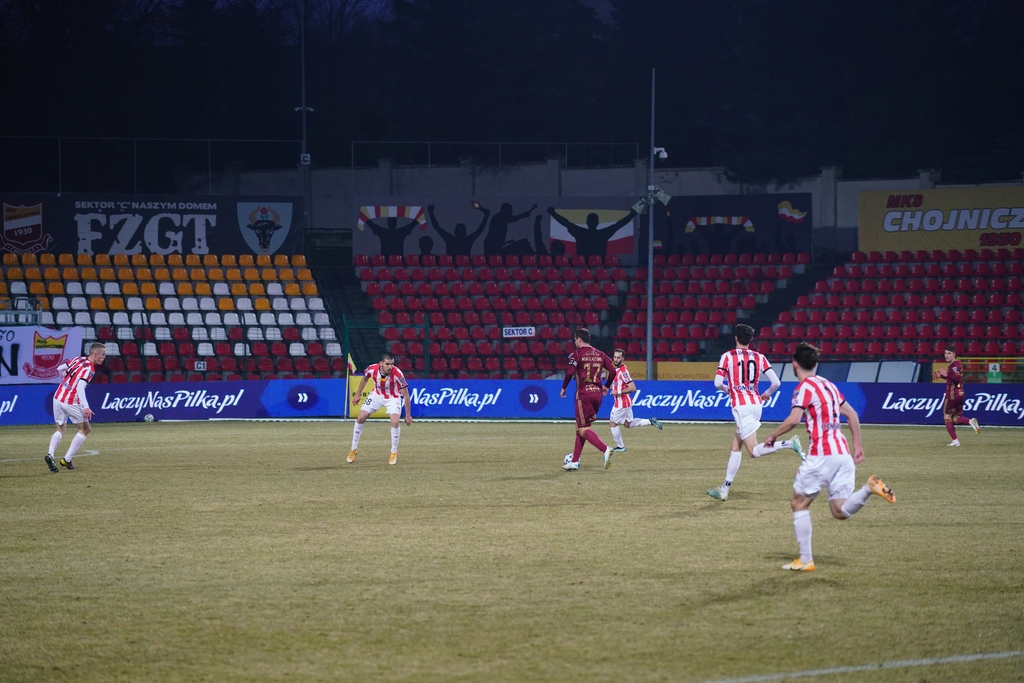To na pewno są bardzo trudne mecze. Takie, bo wiedzieliśmy, że jest tutaj atmosfera taka, że my gdzieś tam w dole i Chojniczanka może to wykorzystać. Bo widać było bardzo dużo agresywności, jeżeli chodzi o zespół z Chojnic. Znam Adama, to wiem, że nastawił bardzo bojowo tutaj zespół. My akurat bardzo dobrze wykonaliśmy pierwszy stały fragment gry, który otworzył ten mecz i przekręciło się światełko u naszych zawodników i widać swobodę, jaką dostali później i kontrolowaliśmy w pełni ten mecz.