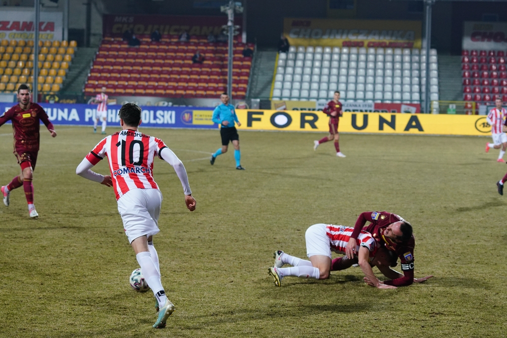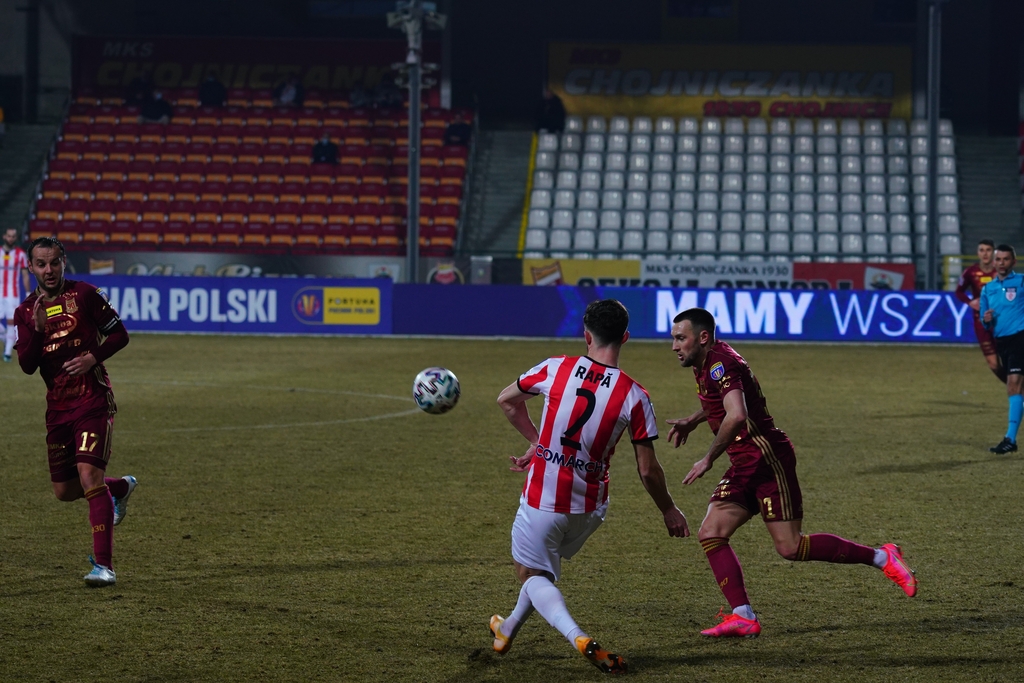 Na ćwierćfinale zakończyła się przygoda Chojniczanki z Pucharem Polski. Nasi drugoligowcy nie byli w stanie sprawić niespodzianki i przegrali dziś (3.03) z ekstraklasową Cracovią Kraków 0:3. Dwie bramki dla gości zdobył Pelle van Amersfoort, a jedną dołożył Daniel Pik.