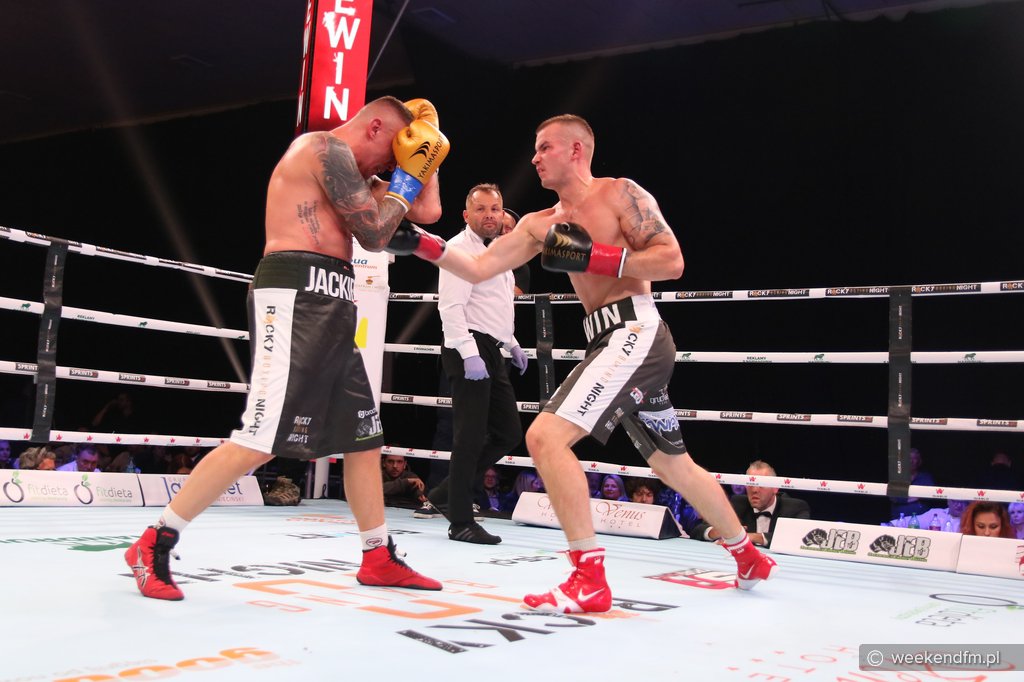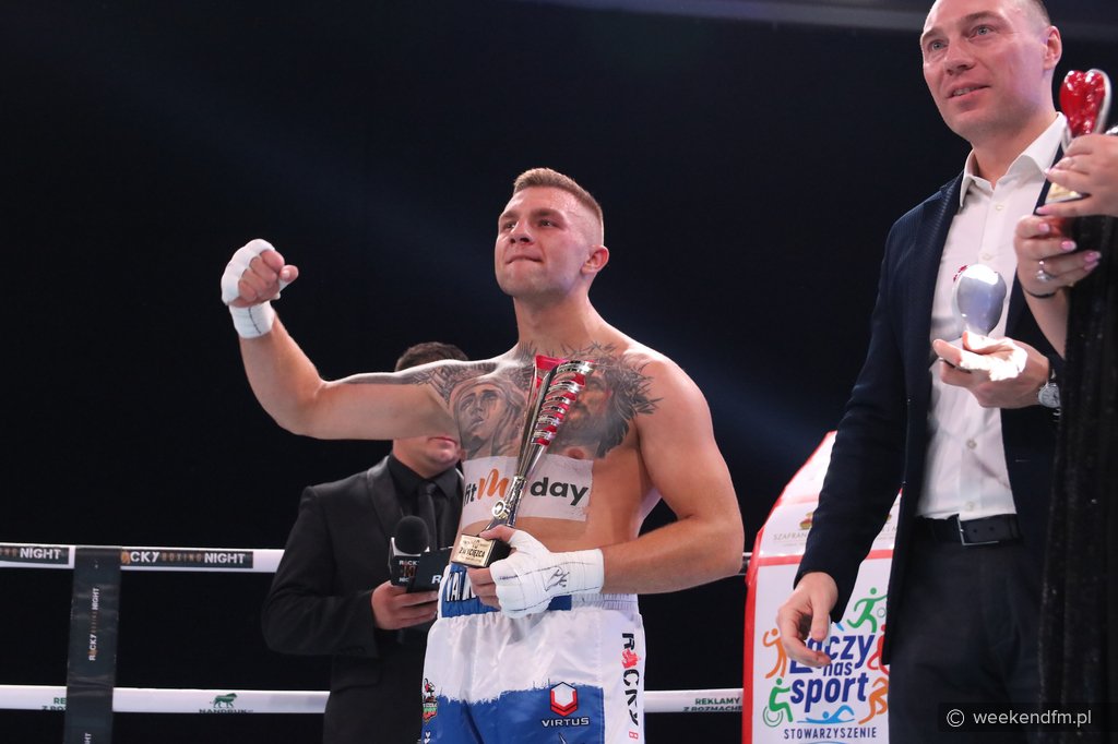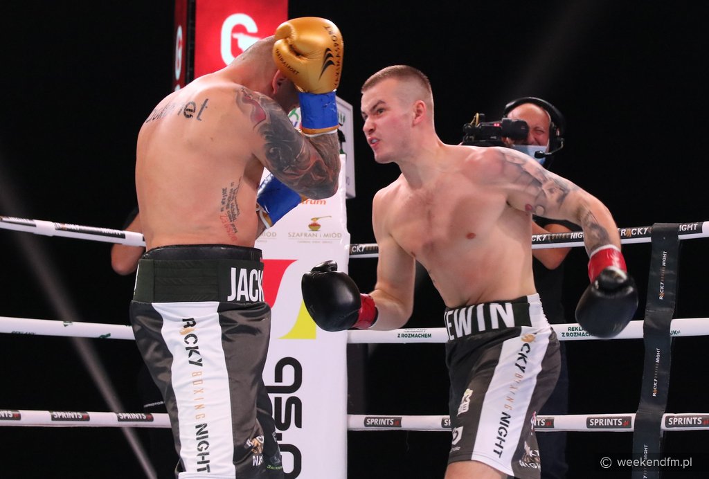 Cieszę się, że mogłem się zmierzyć z takim pięściarzem doświadczonym, jak Rafał Jackiewicz. Cztery rundy naprawdę fajne, ciężkie, nie powiem - ciężkie, bo Rafał był bardzo "śliskim" pięściarzem. Gdzie biłem, to te ręce gdzieś schodziły mu po tych łokciach, te moje pięści. Biłem na głowę, to jakoś to wszystko przepuszczał bokiem, ale kilka ciosów naprawdę mocnych ulokowałem na jego twarzy i korpusie. Tak że myślę, że to spowodowało kapitulacje u niego po tej czwartej rundzie.