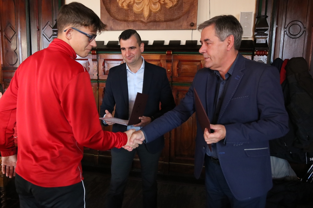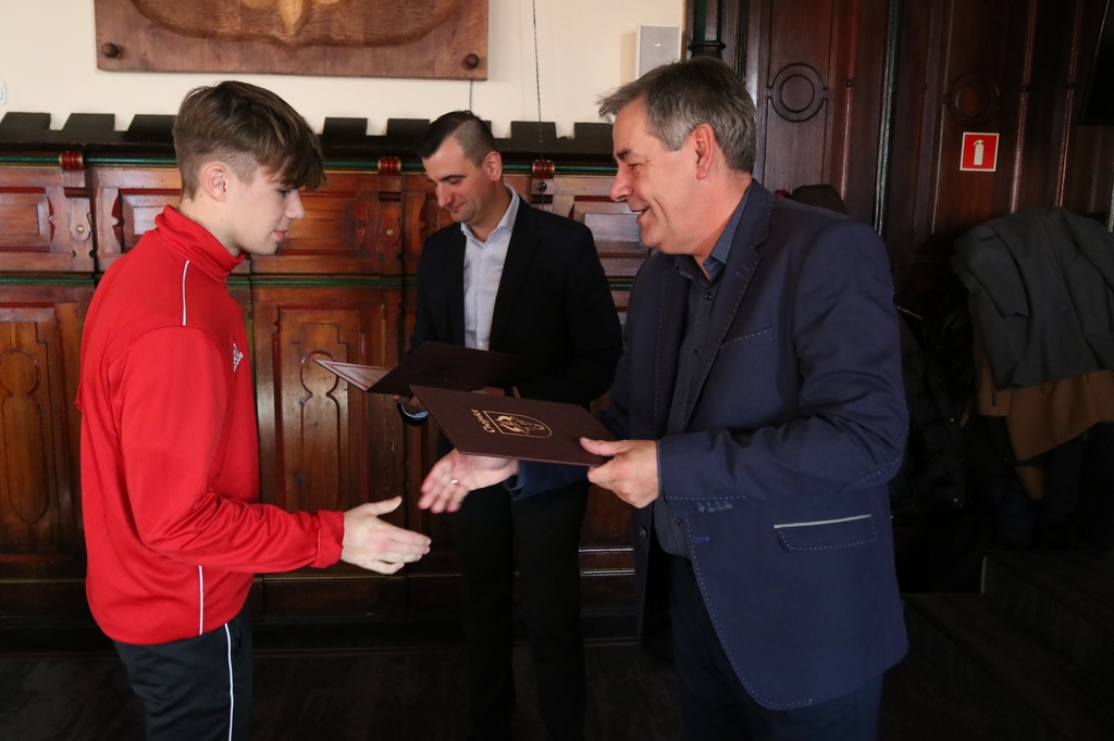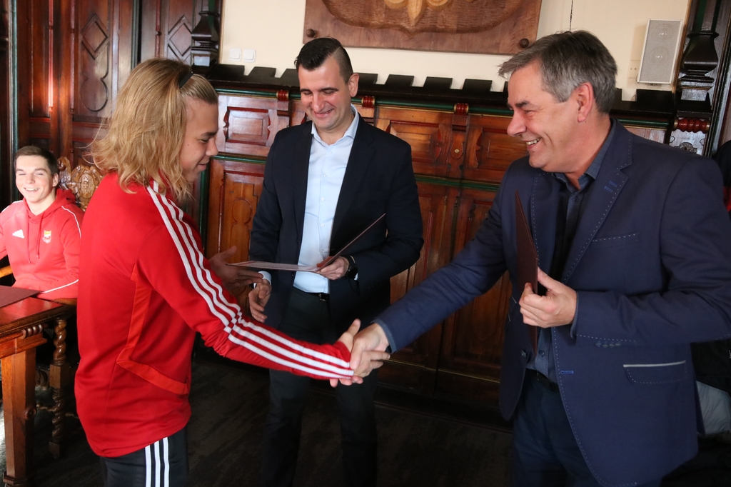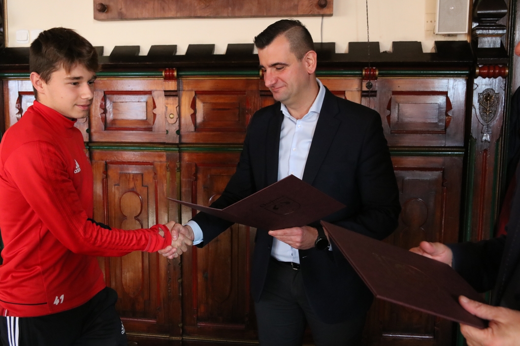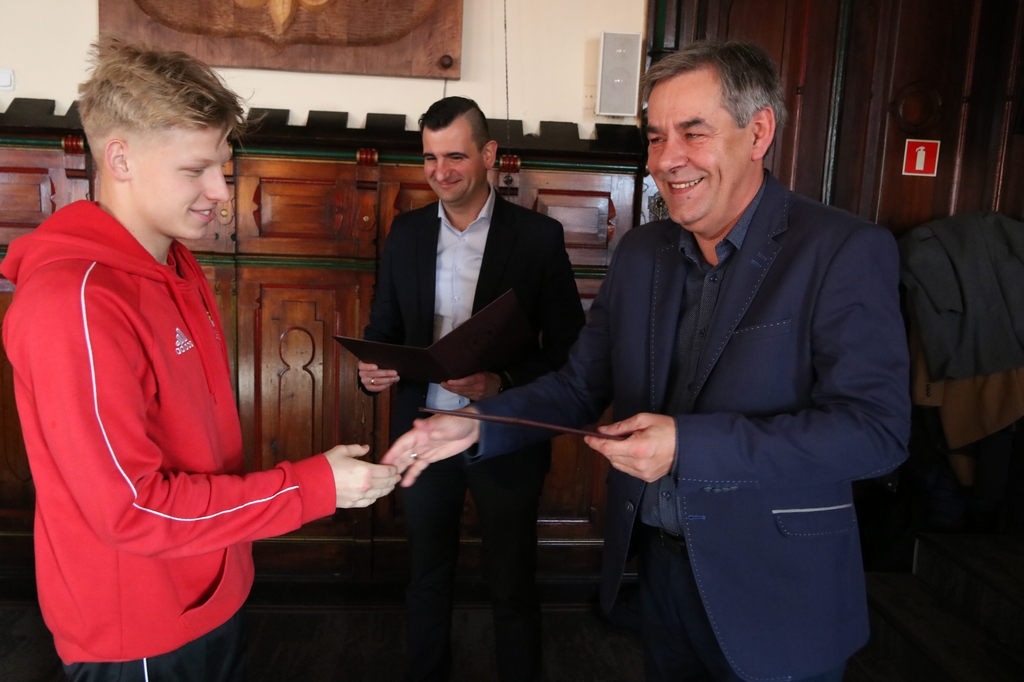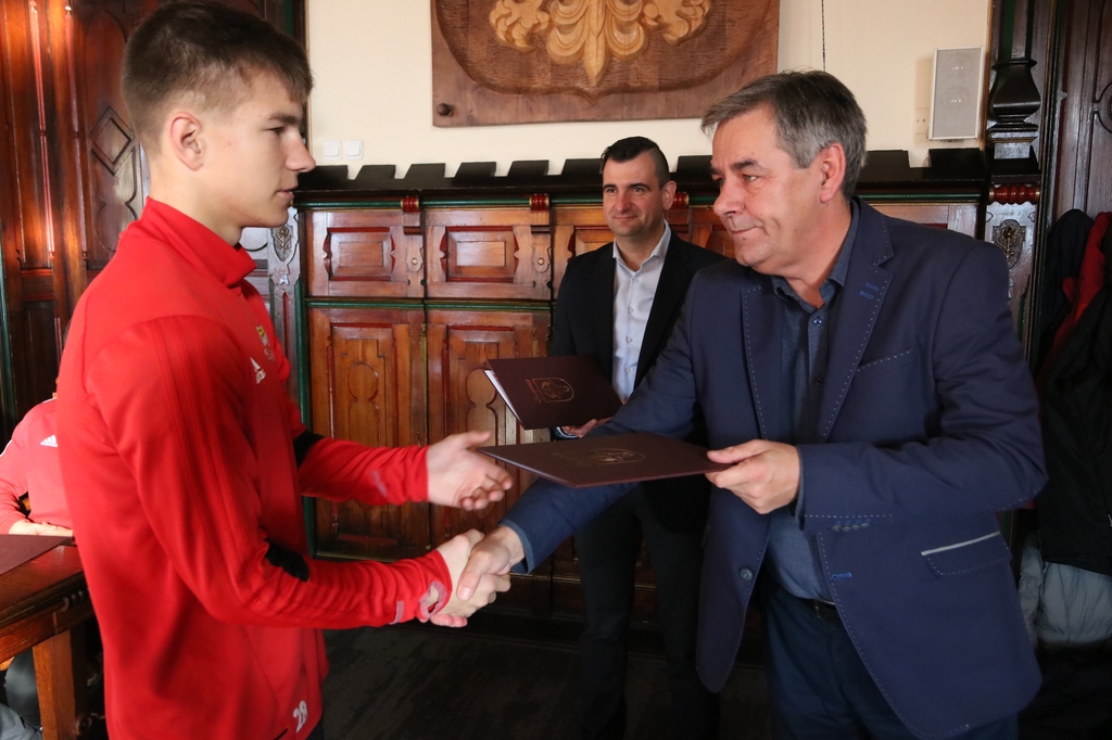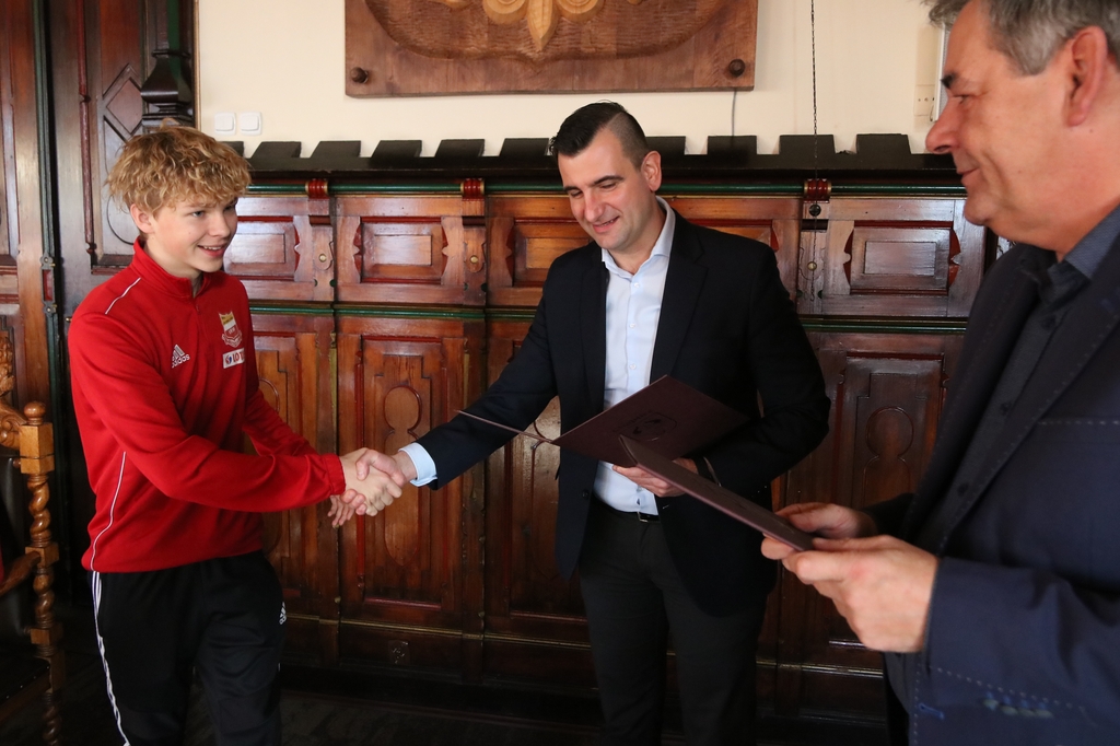 Burmistrz Chojnic gościł dziś (9.11.) w ratuszu juniorów starszych Chojniczanki. Arseniusz Finster wręczył im oraz ich trenerowi Maciejowi Kuczkowskiemu listy gratulacyjne z okazji awansu do Ligi Makroregionalnej U-19.